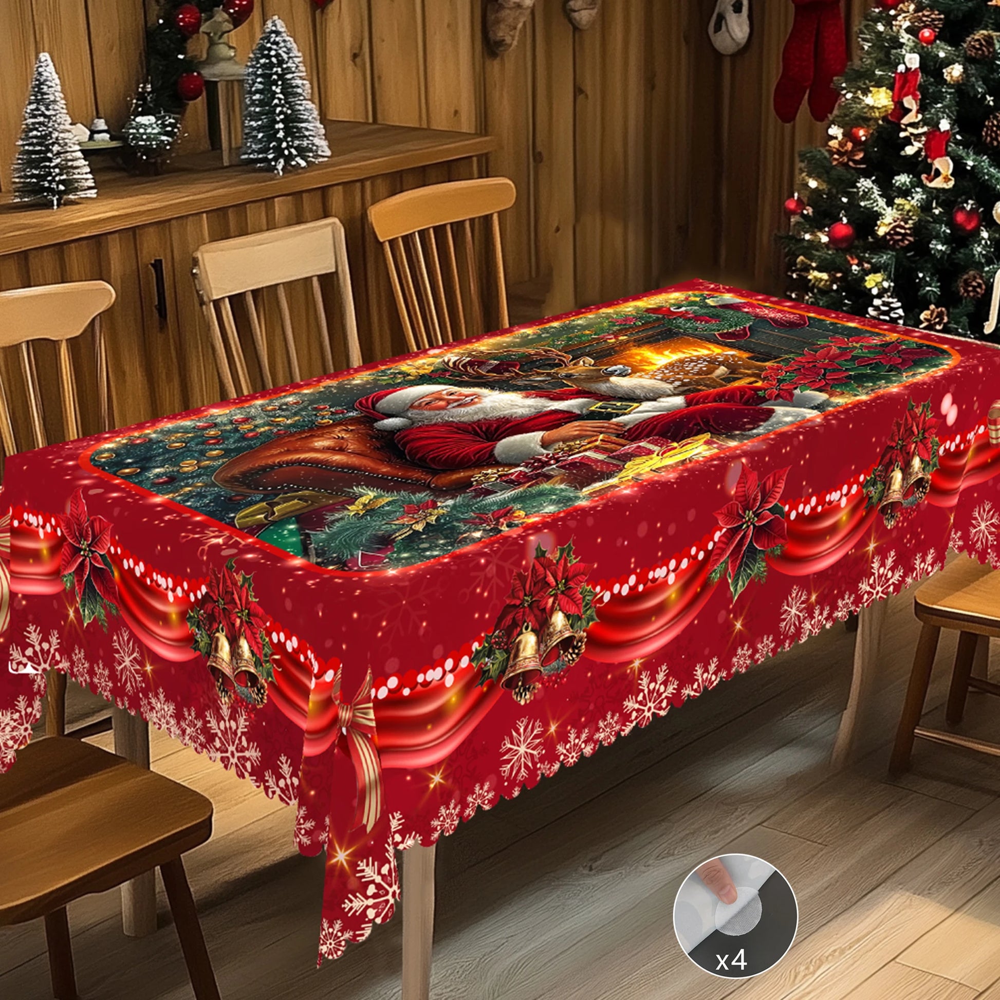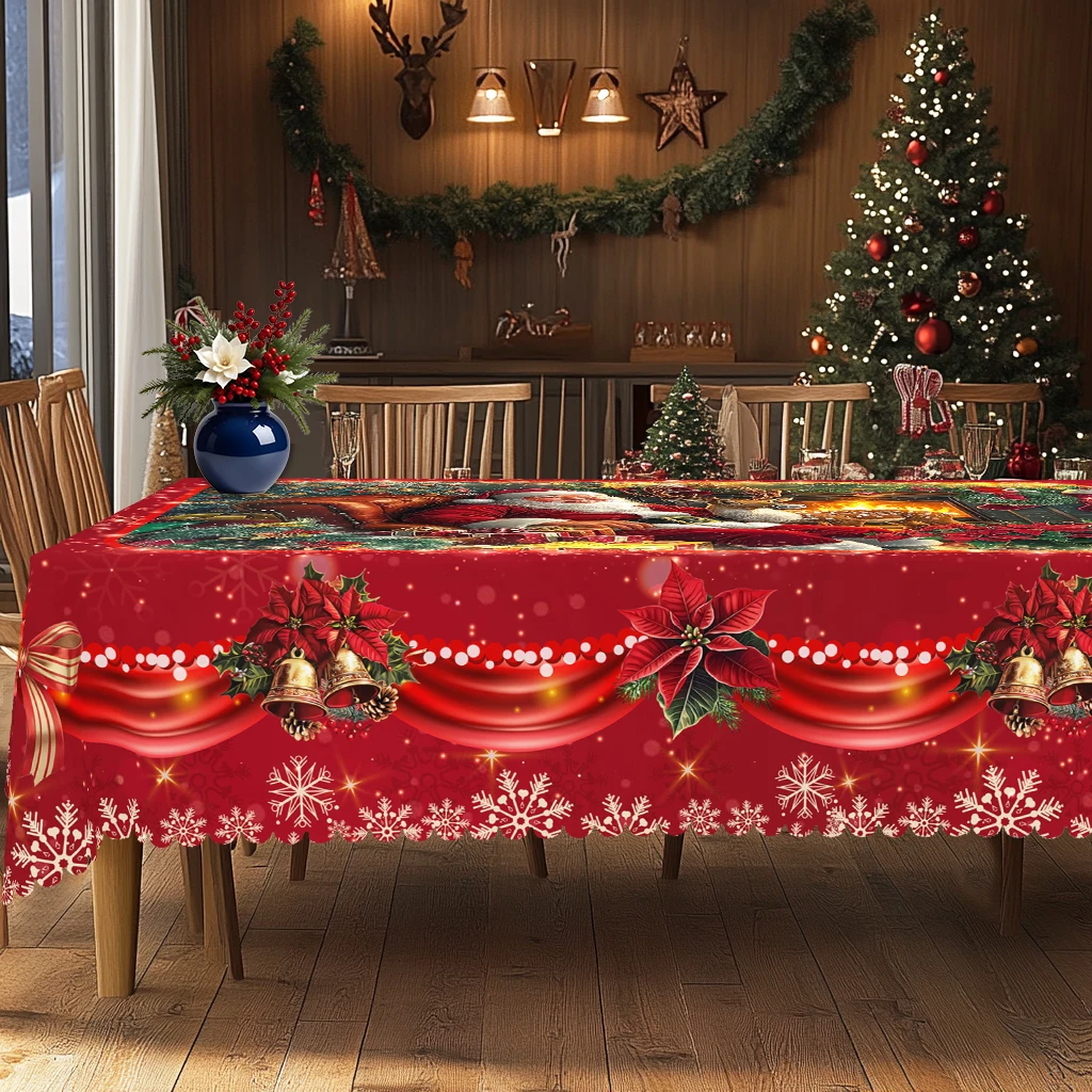 1 Piece of Red Merry Christmas Themed Printed Tablecloth, Retro Country Farmhouse Style, Santa Claus, Christmas Flower Pattern Design for Christmas, New Year Party, Party Decoration, Kitchen Accessories, Room and Outdoor Deco
