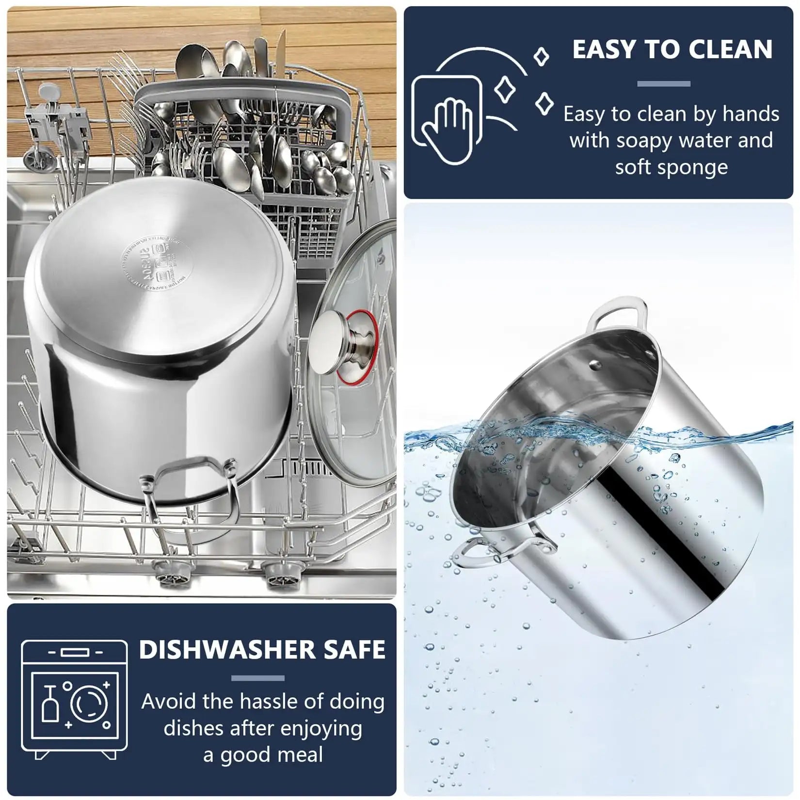 12QT Stainless Steel Stock Pot with Glass Lid, 18/10 Food-Grade Material, 3-Ply Bottom, Induction Compatible, Dishwasher Safe