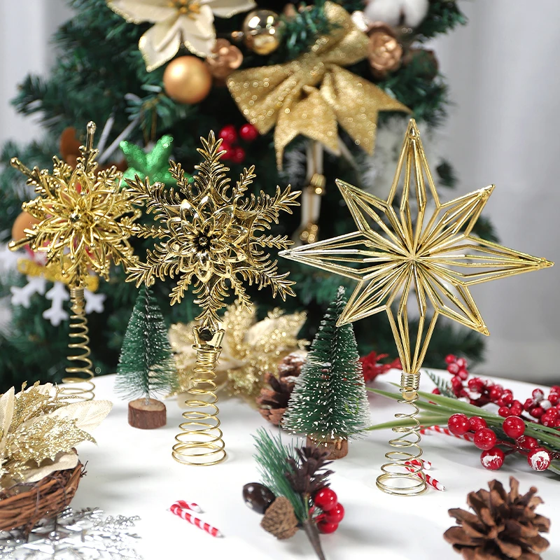 1Pcs Christmas Decoration Xmas Tree Topper Glitter Gold Star Pendant for Home Decor 2026 New Year Party Gift Navidad Accessories