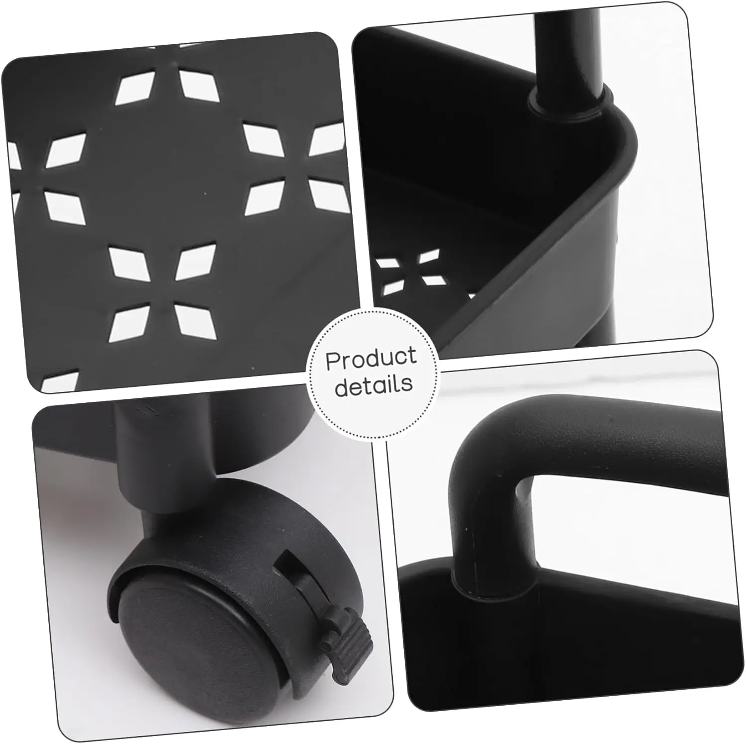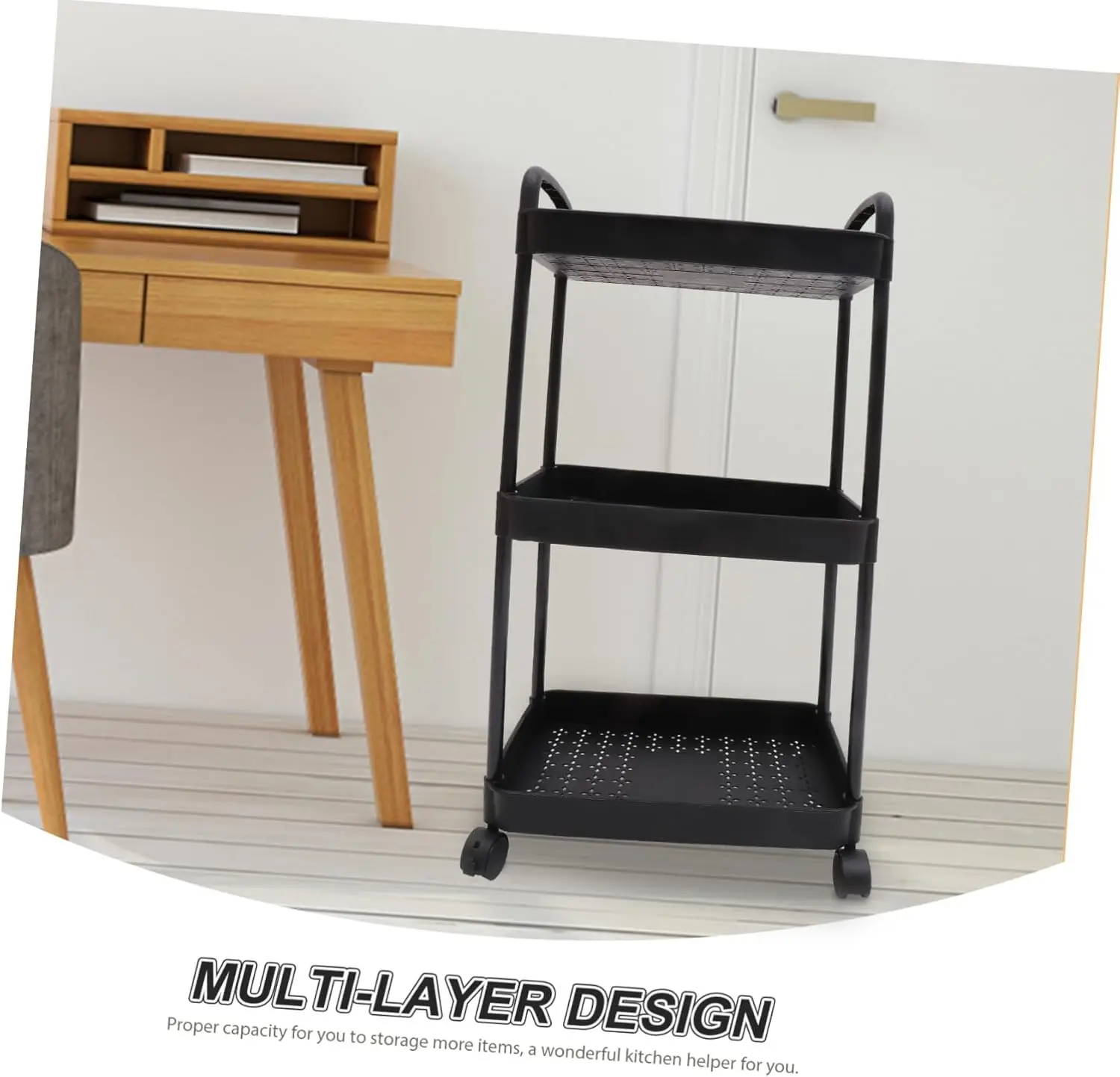 3 Tier Rolling Cart with Wheels and Handle, Multi-Functional Storage Trolley for Office, Living Room, Kitchen, Movable Storage Organizer with Wheels, Makeup in Bathroom Laundry Room Kitchen Bedside Narrow Space, black---