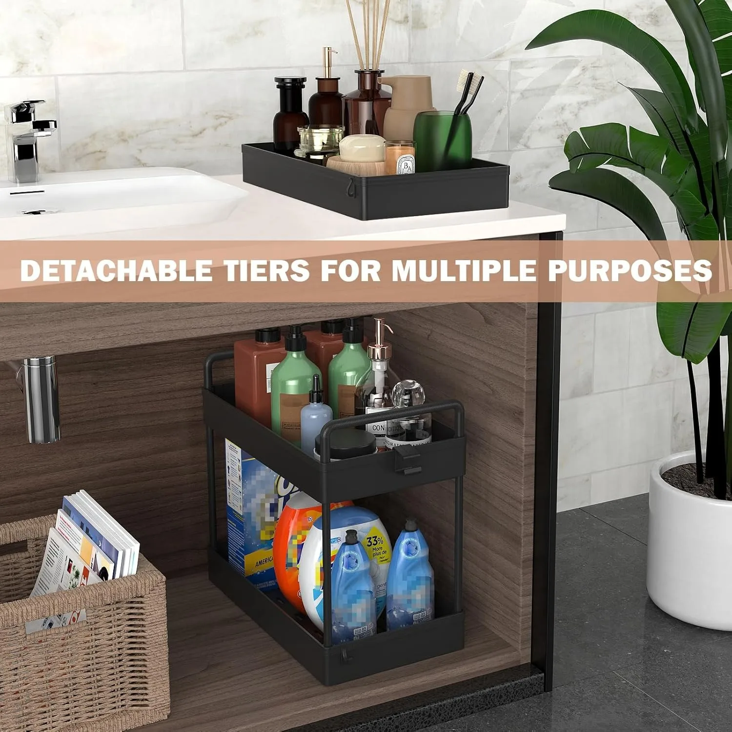 【Versatile and Adjustable Design】This thin rolling storage cart features high edges to keep items secure, 6 movable side hooks for hanging small essentials, two side handles for easy pushing and pulling, and an adjustable middle section for customizable storage. The mesh bottom allows for easy cleaning with water, ensuring your rolling storage cart stays tidy and functional