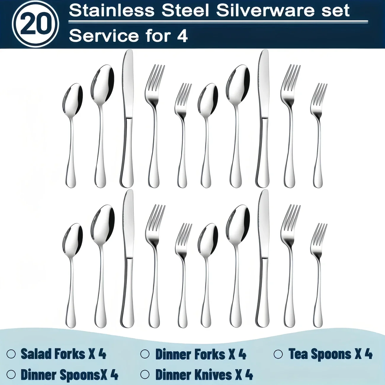 60/20 Pcs, stainless steel silverware set, kitchenware knives, forks and spoons, dishwasher safe, rust-proof and non-toxic
