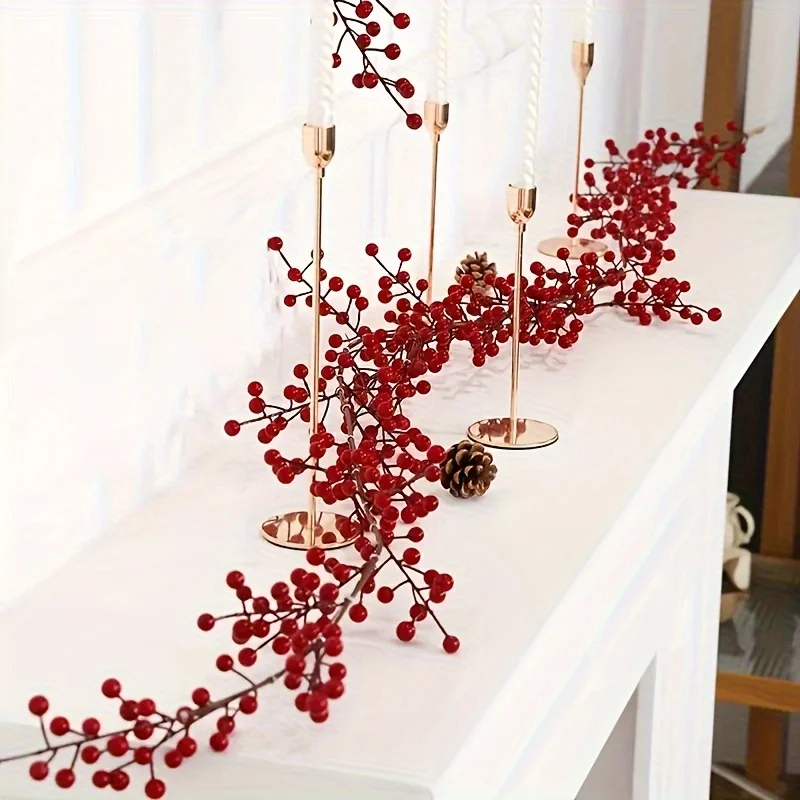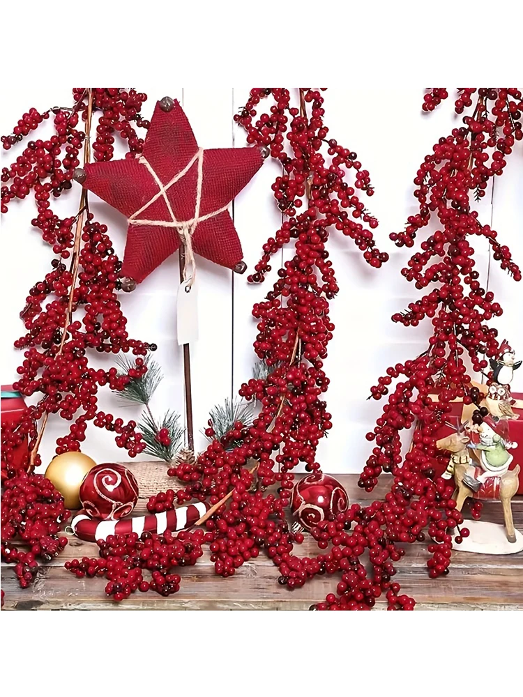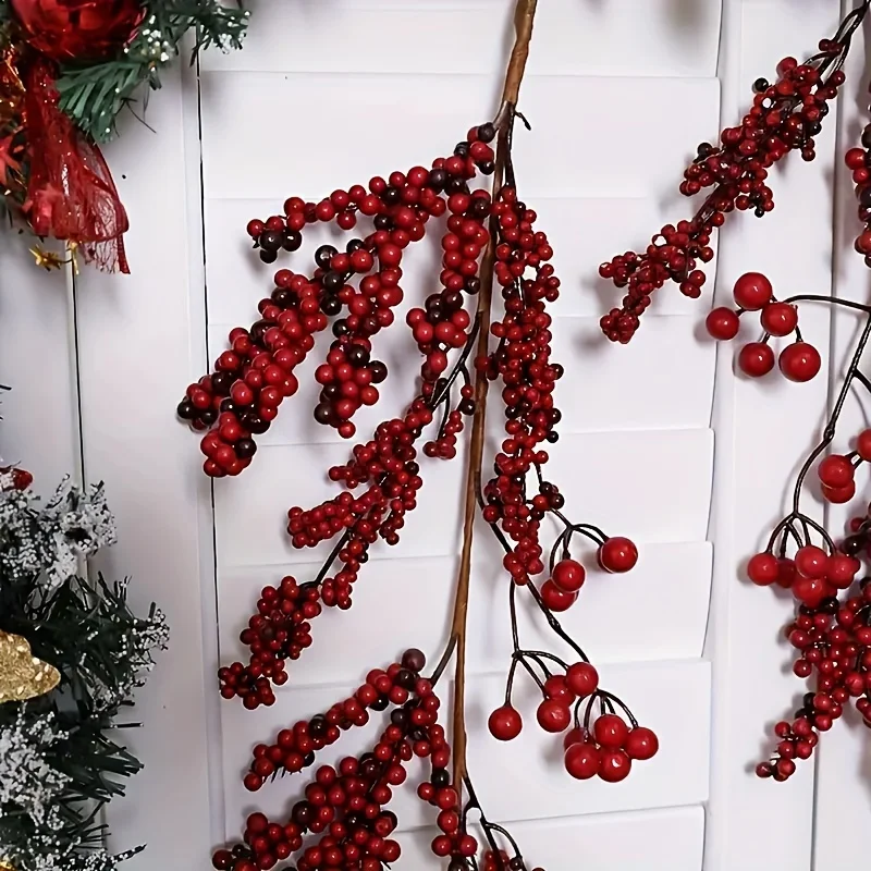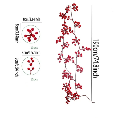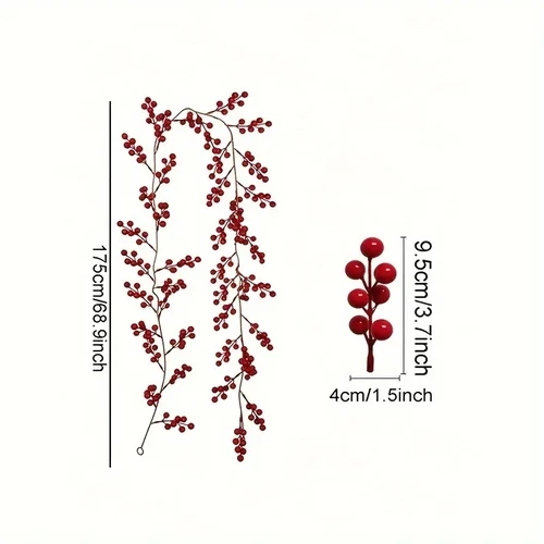68/74 Inches Artificial Red Berry Garland Vine 2024 Christmas Decoration Holly Fruit Hanging Rattan New Year Decoration