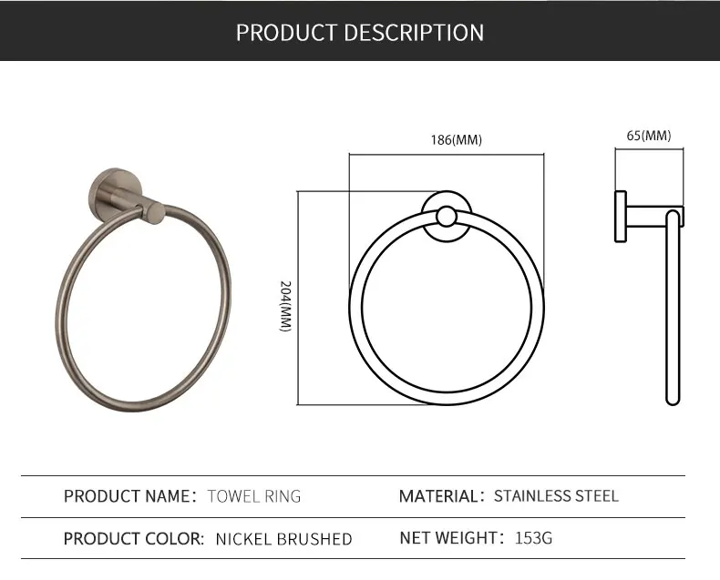 Brushed Nickel Bathroom Hardware Set Wall Mount Stainless Steel Towel Bar Towel Ring Paper Holder Robe Hook Bathroom Accessories Set