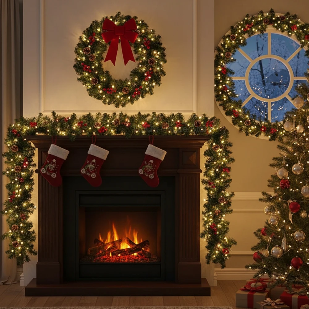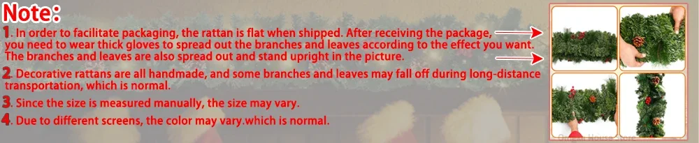 3.Battery Powered: Christmas garland and Christmas wreath flocked require 3 AA batteries (not included), so you don't have to worry about wiring, you can place them anywhere.