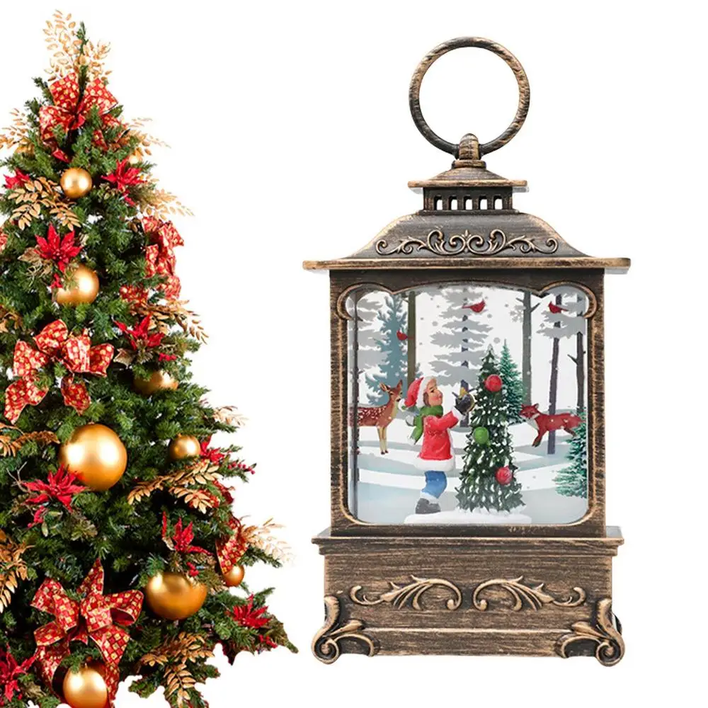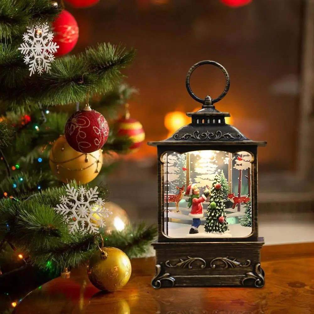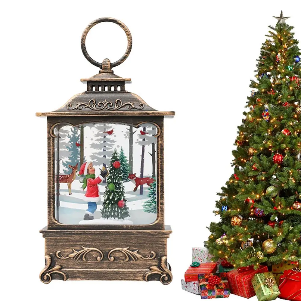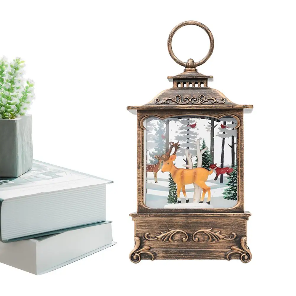 Transform your living space into a winter world with this solid Christmas snow globe lantern. Featuring Santa Claus surrounded by a festive scene of Christmas elk, child, and snowman, it creates a warm and comfortable environment.