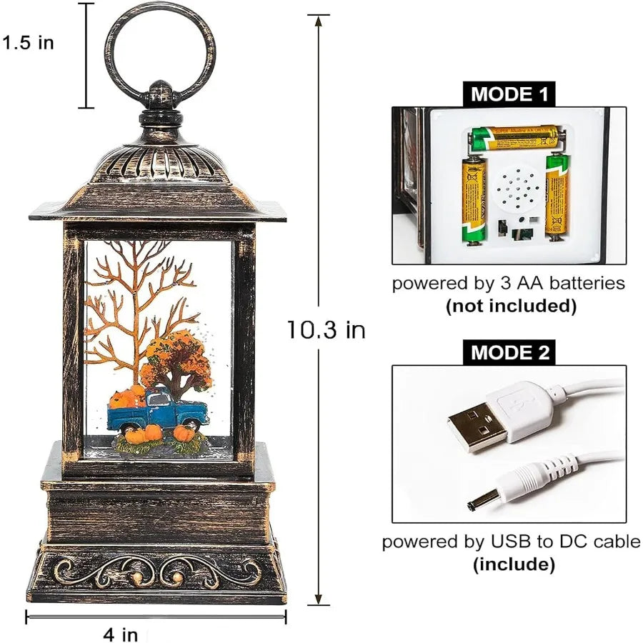 Fall Snow Globe Lantern with Lighted Feature for Thanksgiving and Halloween Decorations Swirling Glitter Snow Globe Design Perf