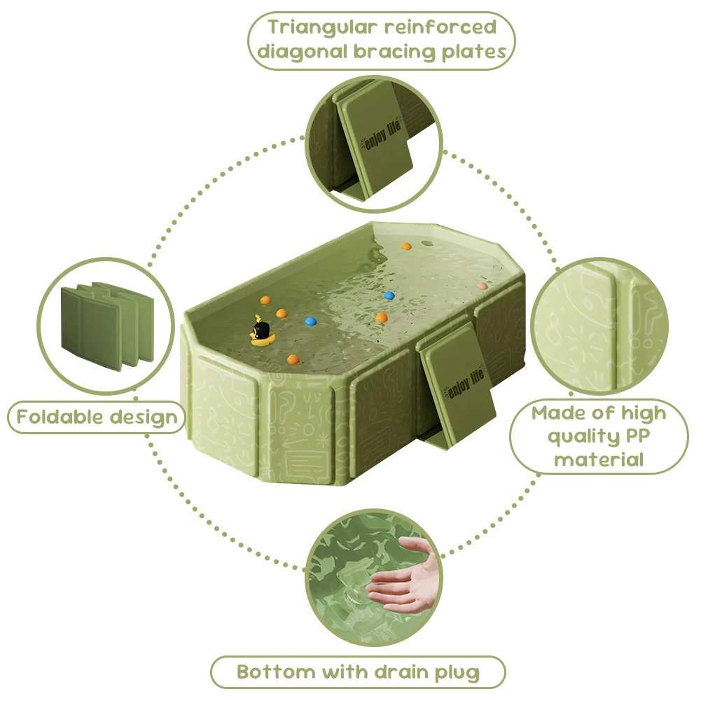 1. Compact Foldable Design: This baby bathtub features an ingenious foldable design that occupies less than 0.2 square meters, making it easy to store in any corner and enhancing its portability for home and travel use.