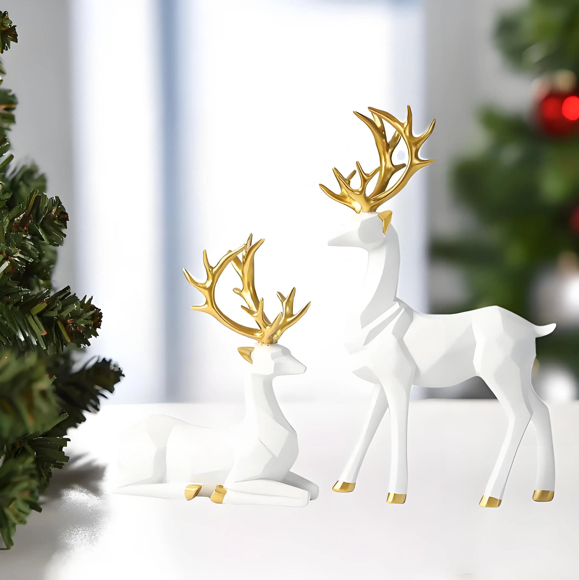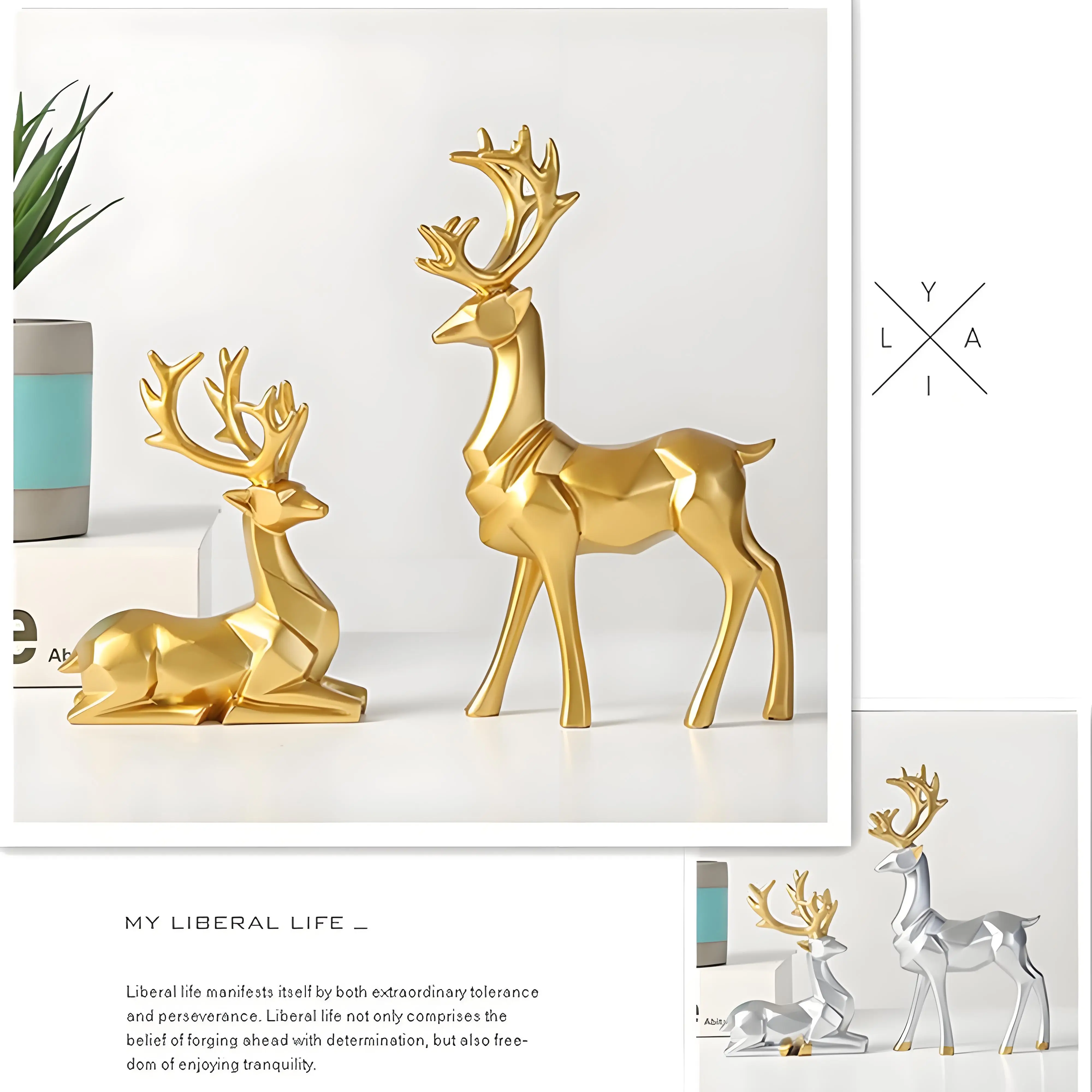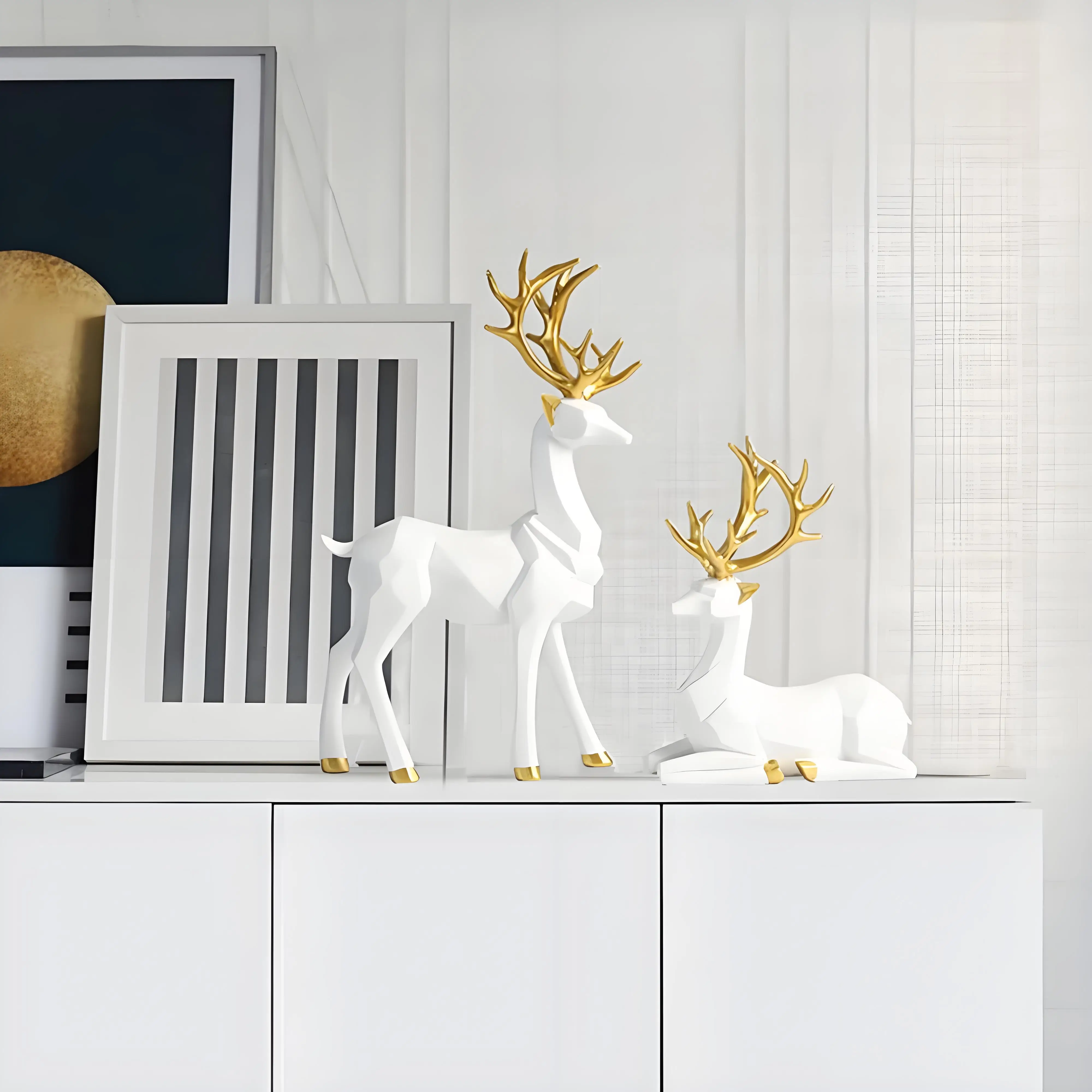 Geometric Elk Statue Set of 2, Modern Resin Deer Sculpture for Living Room & Office Decor - Elegant Display for Shelf & Desk