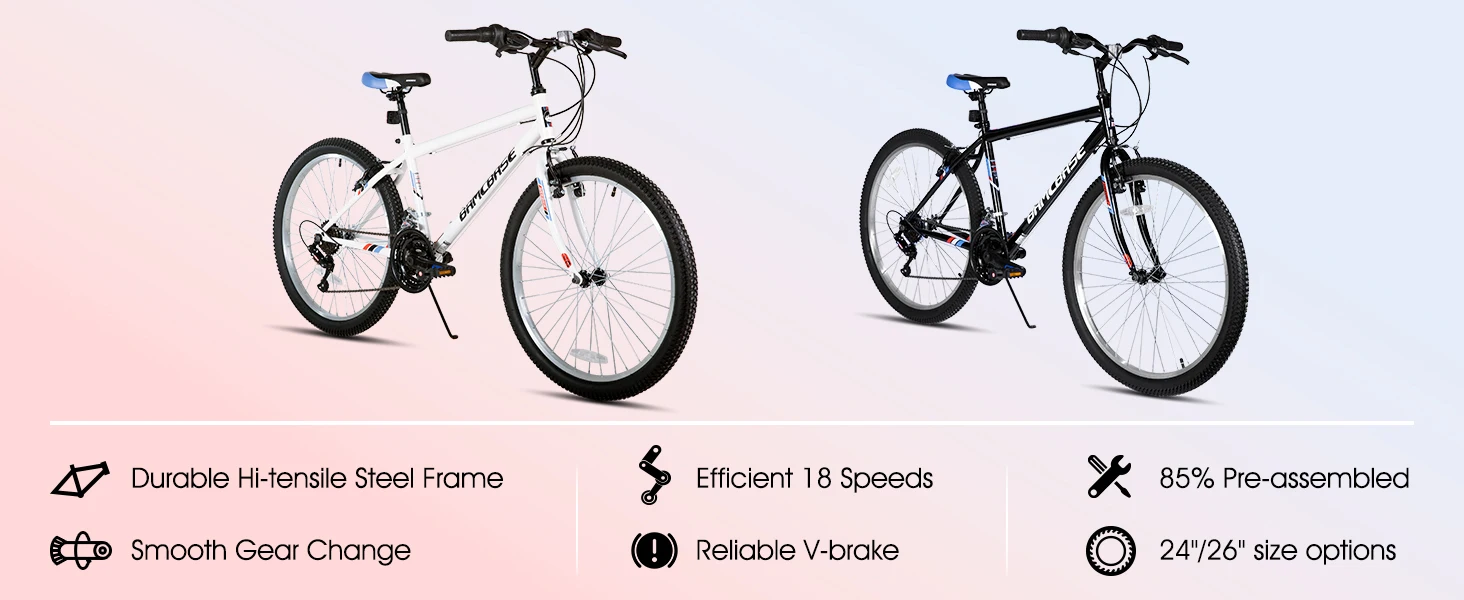 Durable Design: Constructed from high-strength steel for durability, this is a rugged choice for both men and women; Tackle any terrain with confidence on this rugged 24" and 26" mountain bike