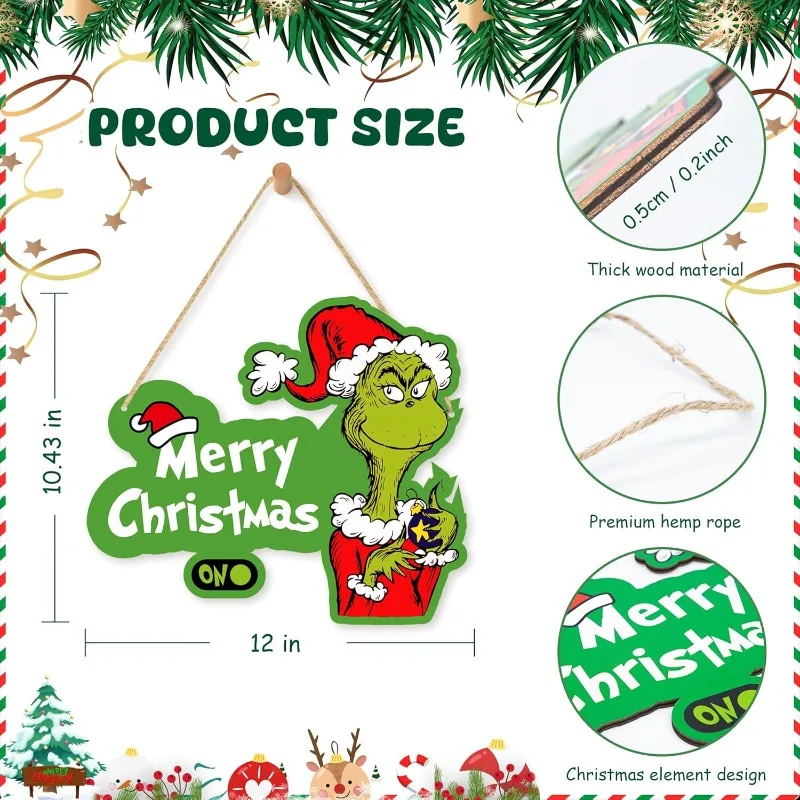 Holiday Whoville Door Hanger - Welcome Christmas Sign for Front Entry, Xmas Decorations Inspired by Dr Seuss Home & Party Decor