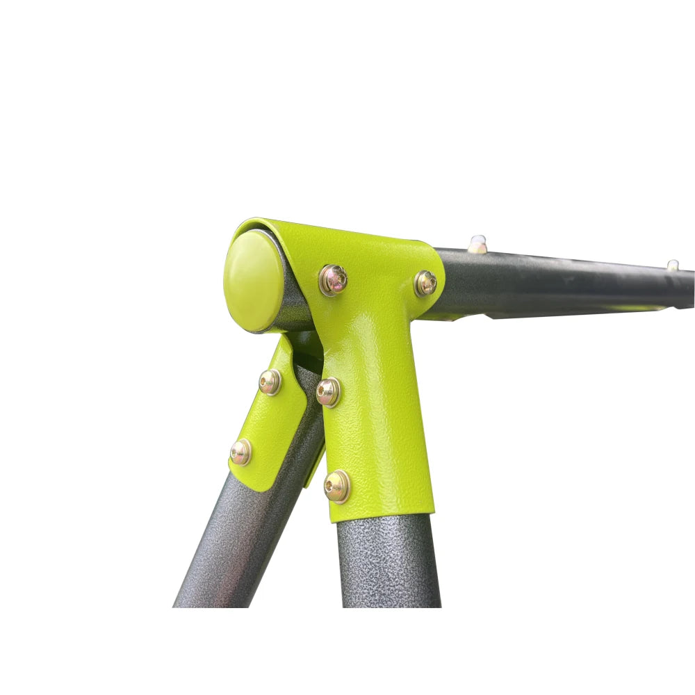 Introducing the Three Seat Swing - the perfect way to bring joy and laughter to your child's playtime! Our swing is designed with both fun and safety in mind, featuring a unique three-seat design that allows up to four children to play together at once. Measuring 100.78 inches in length, 53.54 inches in width, and 70.86 inches in height, our swing is the perfect size for children to enjoy. And with a weight of 47.39 pounds, it's sturdy enough to withstand even the most enthusiastic playtime. One of the best things about our swing is its easy assembly and disassembly. Made with high-quality steel and plastic materials, it's both durable and lightweight, making it perfect for indoor and outdoor play. But what really sets our swing apart is its unique design. With a face-to-face swing and two curved boards, children can enjoy a variety of swinging experiences. And with its bright lemon green plastic pieces and black steel pipes, it's sure to be a hit with kids of all ages.