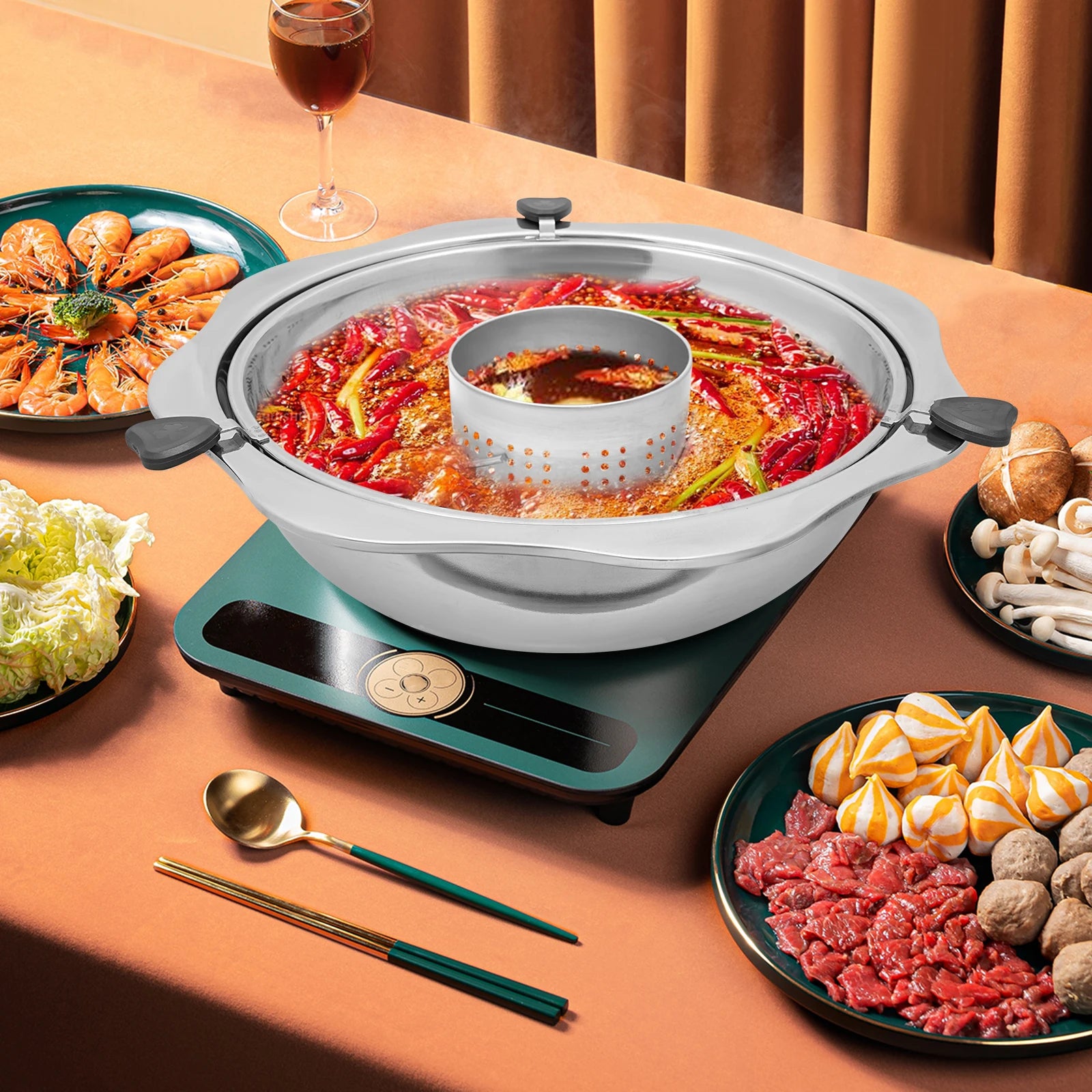 Large Capacity Hot Pot Hot Pot Shabu Shabu 36cm Rotary Hot Pot with Divider Lifting Hot Pot Heat Resistance Widened Edges