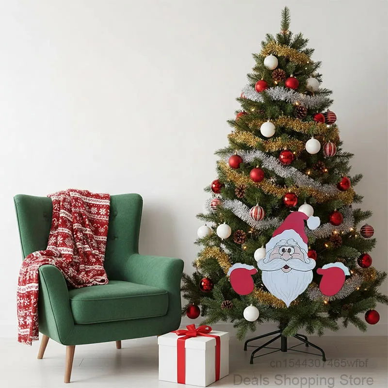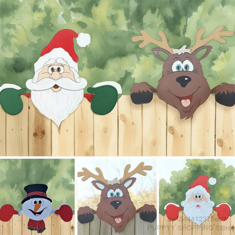 Santa Clause Snowman Reindeer Peeker Yard Decor, Christmas Peeker Fence Decor, Festive Christmas Decorations for Home Garden