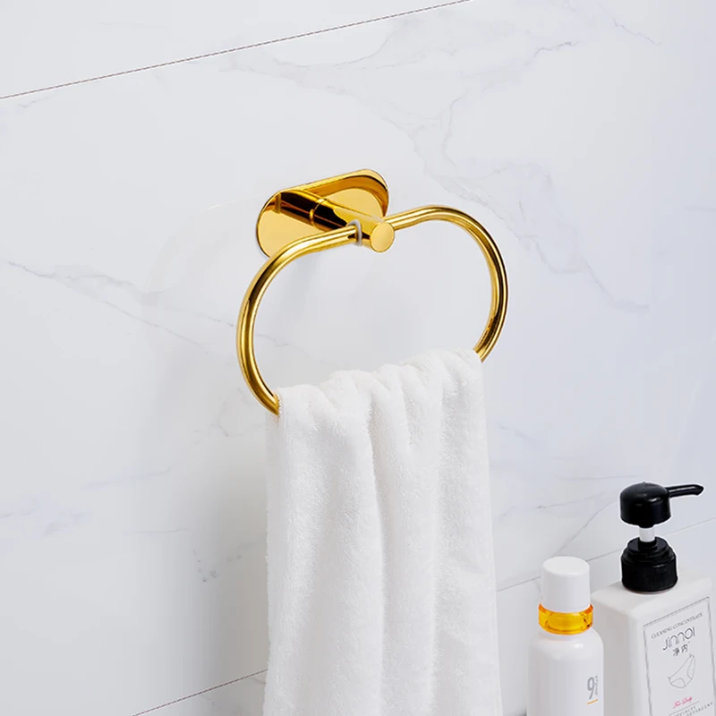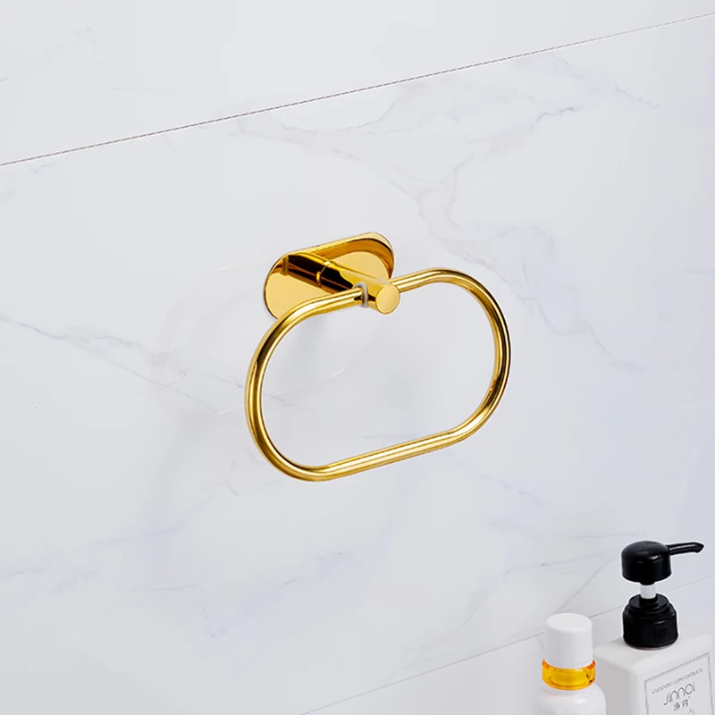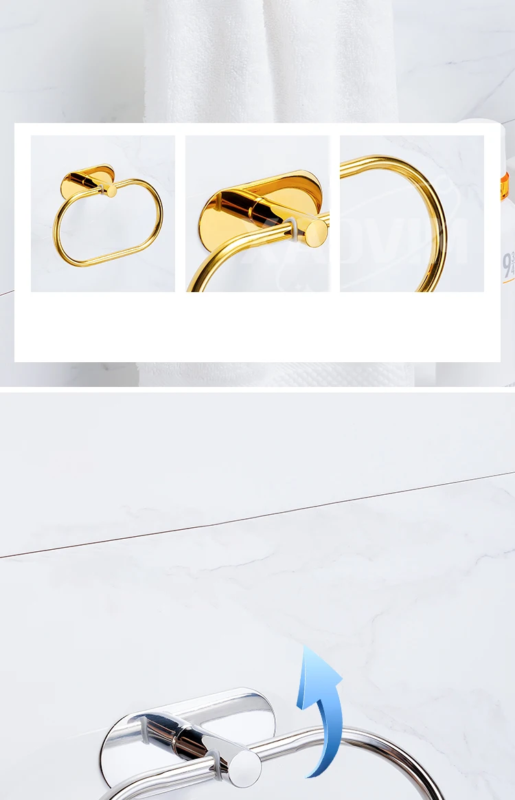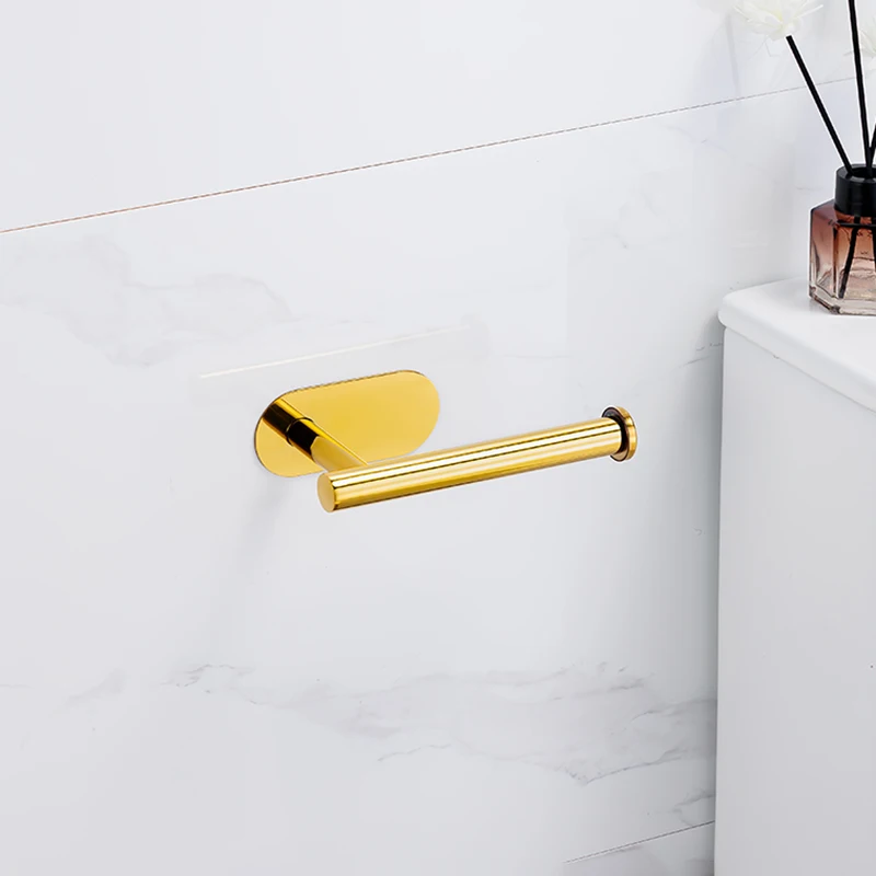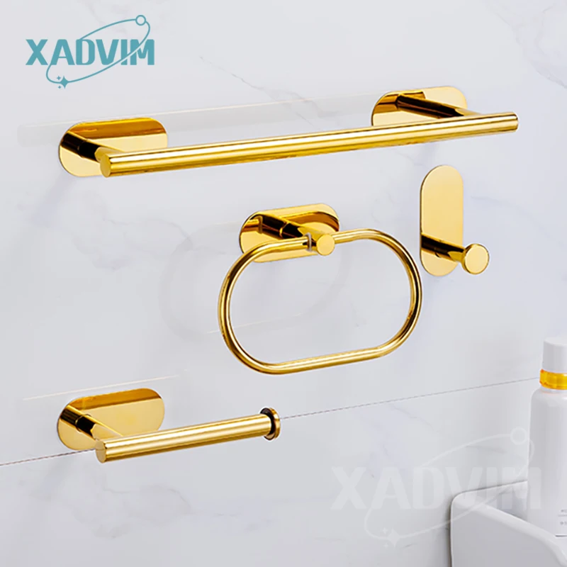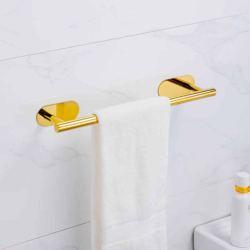 Silver Gold 304 Stainless Steel Towel Bar No Drilling Paper Holder Self-adhesive Towel Ring Robe Hook Bathroom Accessories Set
