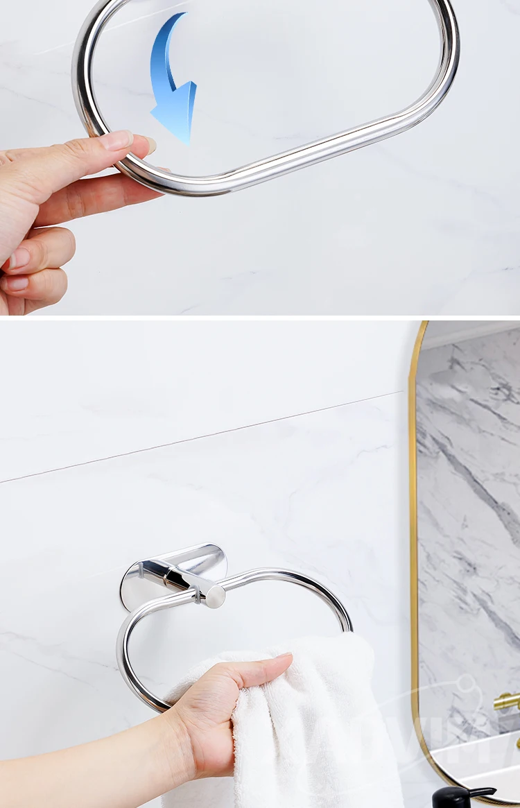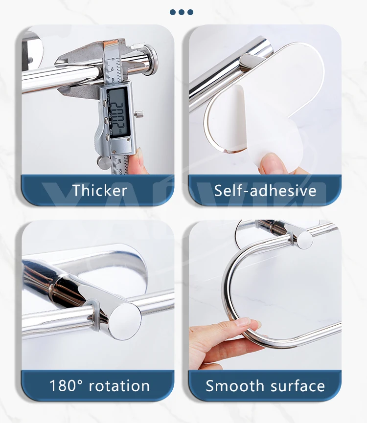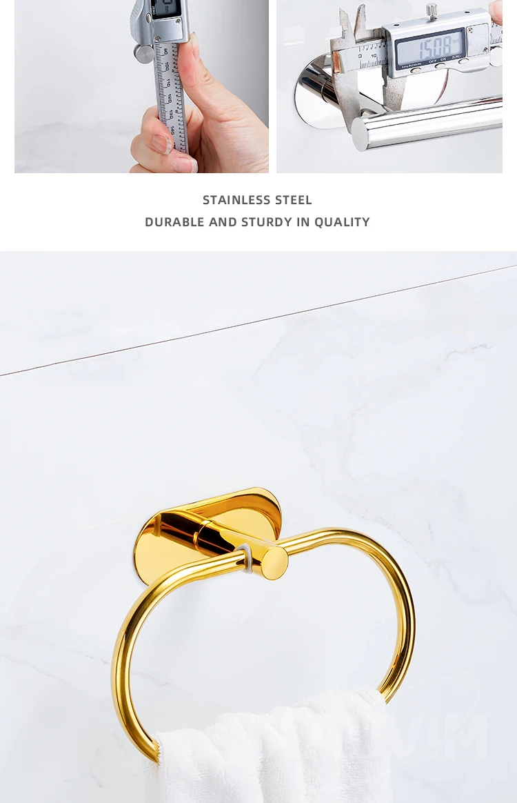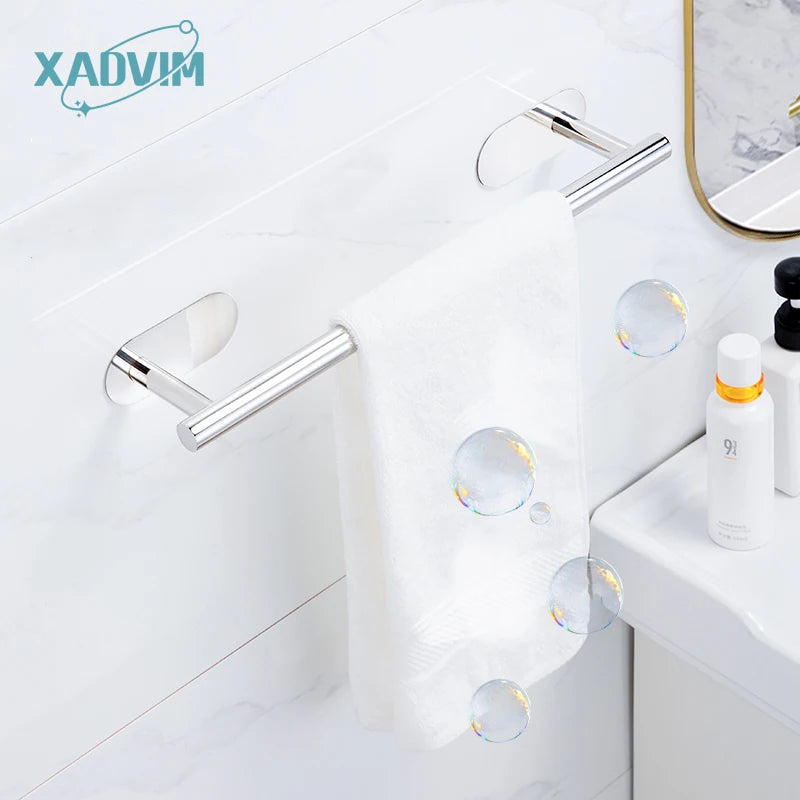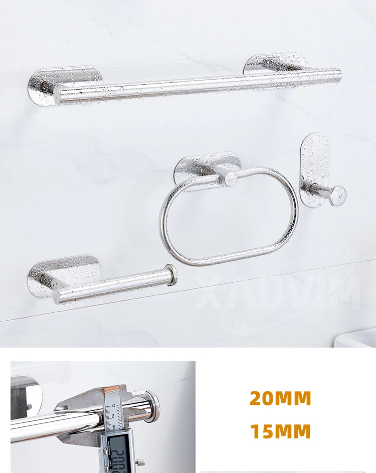 Silver Gold 304 Stainless Steel Towel Bar No Drilling Paper Holder Self-adhesive Towel Ring Robe Hook Bathroom Accessories Set