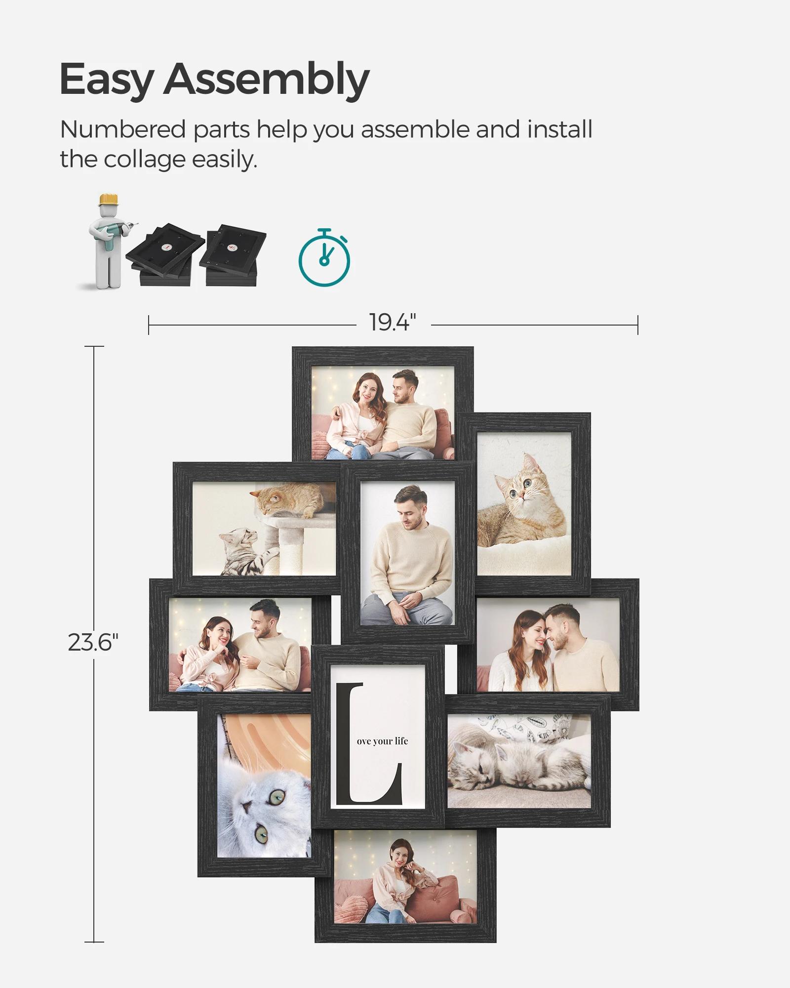 SONGMICS Collage Picture Frames, 4x6 Picture Frames Collage For Wall Decor, 10 Pack Photo Collage Frame For Gallery