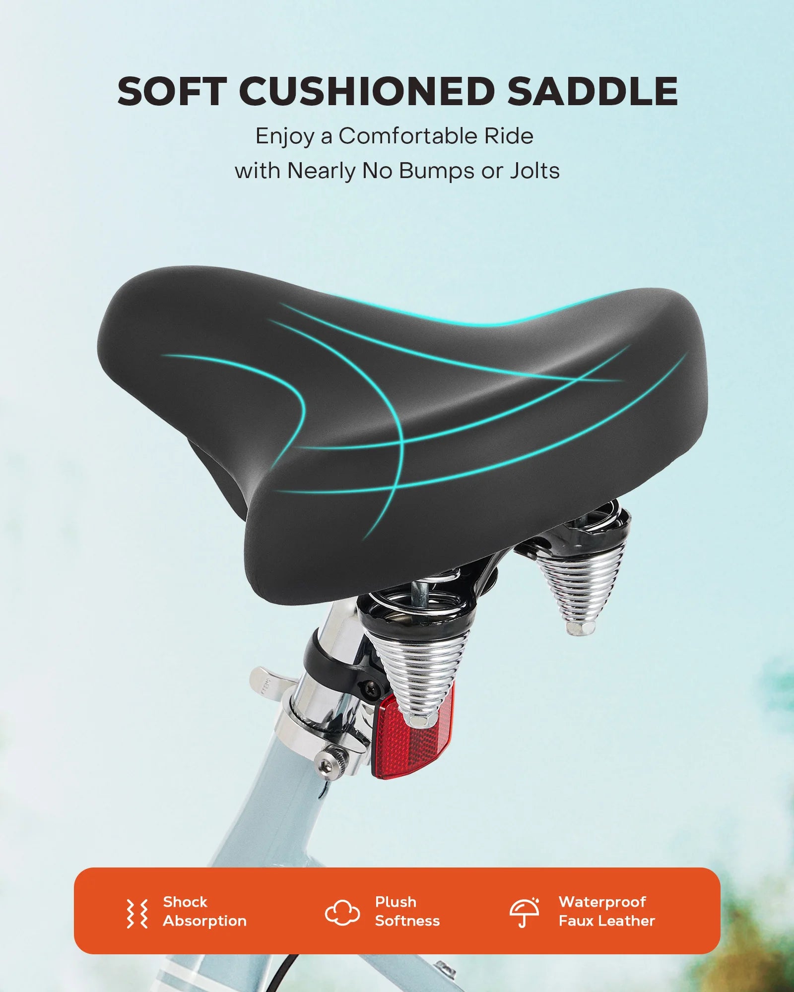 Easy for Any Rider: Designed with a low step-through frame, this beach cruiser bike for women makes hopping on and off effortless. The single-speed design offers simple control and a smooth ride for beginners and seasoned cyclists